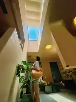 Gotta rave about this sunken infinity pool! The emerald bamboo waves reflect directly on the water surface, and the light at 4 PM is absolutely magical ✨ My little friend played by the pool in her swimsuit while my girlfriends and I lounged in the rest area taking atmospheric shots—every snap looked like a vacation in Spain. The irregular stairs by the pool are also a great photo spot; wearing a light-colored dress and shooting silhouettes is super stylish.