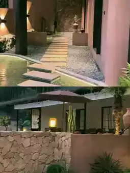 Lying in the hot spring pool by the floor-to-ceiling window in the room, soaking while watching the bamboo sway, the atmosphere is perfect.