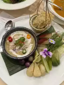 Dinner is available at the restaurant at an additional cost, with reasonable prices. You can pre-book through the butler group chat. Breakfast is free.