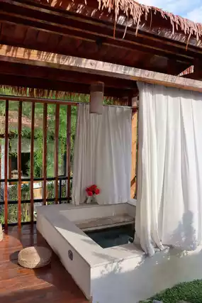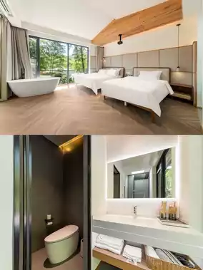 Open your eyes to a sea of bamboo, soak in the hot spring at night while counting stars.