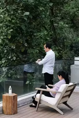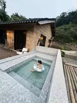 The father took out his fishing gear 🎣, the mother sat nearby watching a movie, and the baby happily splashed in the private hot spring pool.