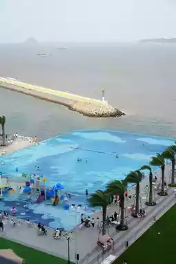 Although it is an imitation of ancient architecture... the pink walls and black tiles, the swaying black awnings, and the flowing water homes recall the charm of Jiangnan