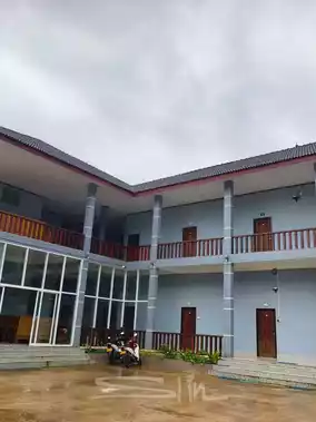 This small, affordable hotel really does exist. The prices are reasonable and there are many room types to choose from, including rooms for two, three, single, and double beds. Convenient parking is available, with a gas station in front for charging your electricity. The two-story accommodation costs 250,000 kip per room. If you choose a room with breakfast included, it's 400,000 kip. The hotel is conveniently located for easy access to all tourist attractions. The hotel offers beautiful mountain views. There's a restaurant next to the hotel, where you can order food in the evening. The food is quite tasty and there's a wide variety to choose from. This is another recommended hotel when you're staying in Xaysomboun.