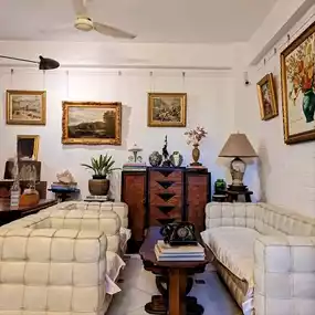 The environment in the store is very beautiful, with white walls, a pink door and a sword lion door knocker. Surrounded by bougainvillea, it is very eye-catching, like a small European villa. The antique and elegant old furniture, the green plants all over the house, and the boss's oil paintings on the walls add to the traditional simplicity and romance of Southern France, which is quite tasteful.