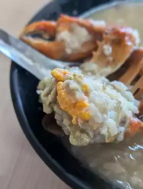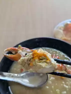 🦀The most signature dish in the store is the crab porridge that is freshly caught and weighed! You can personally select your favorite crab species and then have it cooked on the spot. After about ten minutes, the fragrant crab porridge will be served! Honestly speaking, this cooking method does not allow the delicious flavor of the crab to blend well with the porridge, so it is recommended to scoop out some of the rich crab roe and mix it into the porridge. A bite of delicious crab meat and a bite of rich crab porridge is the best way to enjoy it!