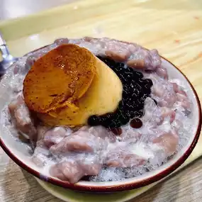 The watermelon tastes average! But fresh! The traditional pudding is a bit rougher than caramel and has a slightly bitter taste! Taro tastes delicious and chewy!