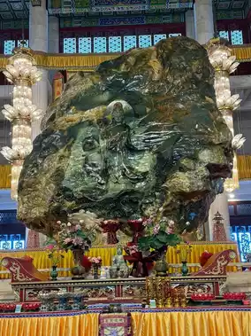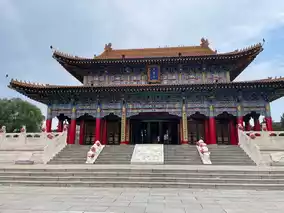🤳 The Jade Buddha Temple, originally known as the Jade Buddha Garden, is one of the first AAAA-level tourist attractions in China. Located in the eastern part of Anshan City, Liaoning Province, it covers an area of 100,000 square meters, surrounded by mountains on three sides and water on one side. It is backed by the beautiful Dongshan Scenic Area and consists of various unique and distinctive buildings, such as the Jade Buddha Pavilion, Jade Belt Bridge, Three-hole Mountain Gate, Lotus Pond, and Flower and Fruit Island. The three imperial roads are carved with nine dragons, symbolizing "Nine Dragons Supporting the Saint."