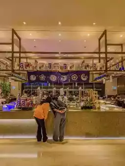 👨🏻🍳 As soon as you enter, there's a Japanese food counter. It's also the spot with the longest queue. At the start of the buffet, the chef will slice fresh salmon sushi right at the entrance.