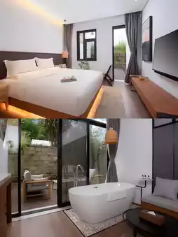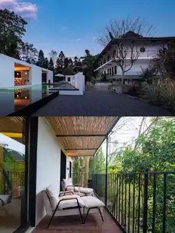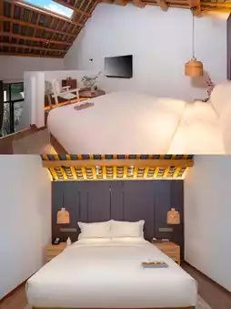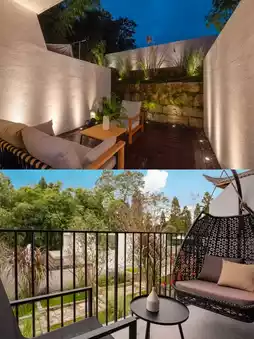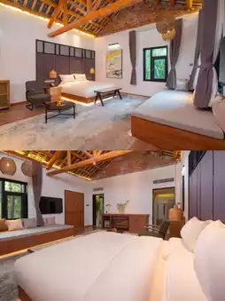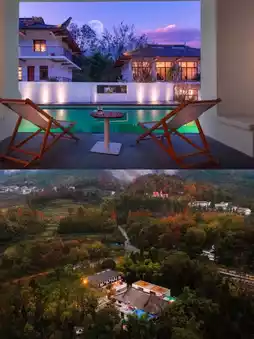 🔮 The homestay was originally an old office building of the forestry department. After a major renovation, it has a whole artistic atmosphere and a new look. Located on the hillside, the green scenery in the woods is relaxing.
