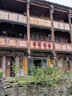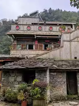 The residents of Tianlong Ancient Town are mostly 'Tunpu people,' a minority group with rich indigenous culture and traditional clothing. The houses are primarily built with stone and wood, giving the town a simple and natural charm.