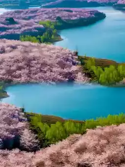 2. Huayang Peak Viewing Platform: 360ยฐ panoramic view of cherry blossoms and Hongfeng Lake, reminiscent of a Monet painting.