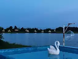 1) The dry plant ring with the reflective glass floor and a view of the lake in the background.