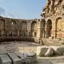 The amphitheater is out of the city where the museum can be entered with a museum pass card, and the entrance is separate. The most remarkable points in the ancient city of Perge are the amphitheater, stadium, big street with columns and The Nympahion of Kestros.