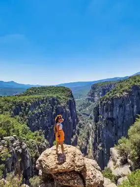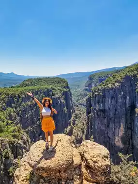 Visiting Tazi Canyon in Turkey was an unforgettable adventure. This stunning canyon is located in the Antalya region and is famous for its breathtaking natural beauty. I began my journey on a trail dotted with magnificent views of mountains and valleys. Upon reaching the summit, I was deeply impressed by the panoramic view of the green valley and the clear river. We sat enjoying the fresh breeze and the quiet sounds of nature. The opportunity to take photos was excellent as the natural colors overlapped between green, blue, and brown. This experience was a perfect combination of adventure and relaxation, leaving unforgettable memories.