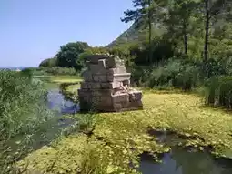 • Step directly from the ruins onto Olympos Beach — a mix of pebbles and sand, surrounded by forested cliffs