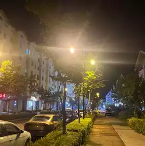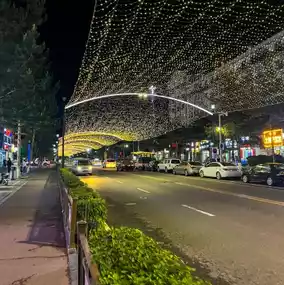 In the evening, I walked around the area, and there was a shopping center, a fruit shop, and a night market!