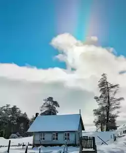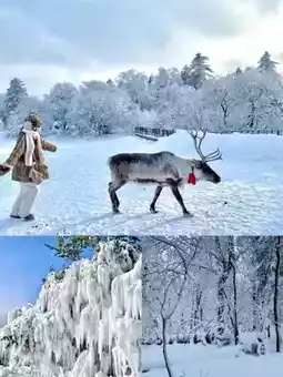 Snow piles, moose🦌, wooden houses, snow mountain hot springs♨️