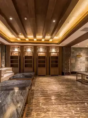 Indulge in the ultimate relaxation at the hotel's volcanic hot springs, featuring 22 pools to soak away your stress under a snowy sky. After a day of adventure, nothing beats the warmth of a traditional Chinese hotpot in the hotel's cozy wooden cabins. 🍲