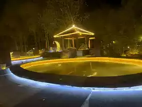 It's a 100-meter walk from the room to the hot spring area, and there's also a free Mercedes-Benz shuttle service. You can take the car if it's cold.