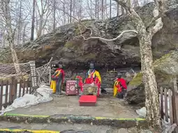 This is where I arrived after taking the second shuttle bus. Even though the middle of the lake was frozen due to the cold weather, the color was pretty. There was a temple nearby.