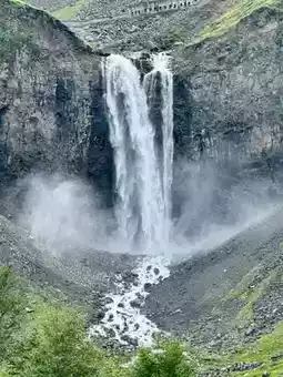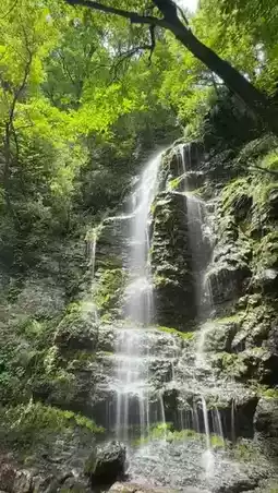 Water from the Heavenly Lake plunges 68 meters down cliffs like a white dragon. Stand beneath it for a refreshing misty splash!