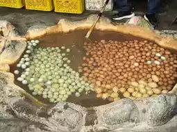 Eggs boiled in Julong Hot Springs—yolks like pudding, whites so tender they slide down. 3 for ¥10, enjoyed with steamy views!