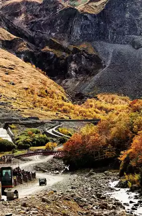 💙Waterfalls and forest secrets, we rode the mountain cable car through the autumn atmosphere, feeling relaxed and very romantic. The trees on both sides gradually change as we wind up and down the mountain along the serpentine road. The cars scattered among the mountains also form a unique landscape.