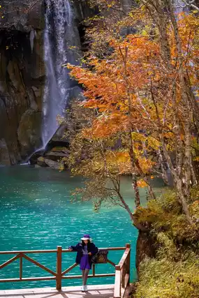 👉 Walk 30 minutes along the plank road, try the hot spring eggs on the way, the pink bridge in front of the waterfall is a perfect photo spot