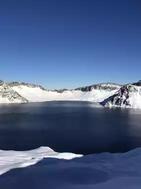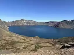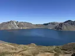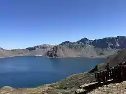 Mount Baekdu is even more breathtaking in person than in photos. Under a perfectly clear sky, the snow-capped peaks stood majestically, fully revealed. Its grandeur leaves one speechless.