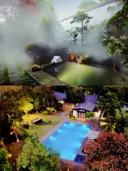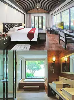 The residence covers an area of 50 acres, with only 17 villas scattered in the mountains. Each room is a scenic room, whether it's a mountain, water, or courtyard. All rooms are equipped with broadband internet connection, entertainment facilities, hot spring pools, and some with private swimming pools. There are more than 80 staff members in the residence, and every guest enjoys exclusive butler service. It's very comfortable to vacation here, and it's very suitable for relaxation.