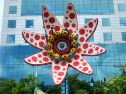 The same goes for Yayoi Kusama's works. The name of the work installed in the Peace Park is Hello, Anyang with Love, and it depicts flowers in full bloom and puppies. I'm having a good time. Thank you.