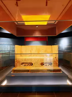 I had to watch the whole thing on my knees, mainly because I couldn't see clearly otherwise 😂. This white marble sarcophagus bed comes from the Qu Qing tomb, which was discovered only 20 years ago. Qu Qing was born into the Qu family of the Gaochang royal lineage, served as a military consultant for the Prince of Pingyang during the Northern Qi dynasty, and held the title of General Zhenwei. He died in the tenth year of the Sui dynasty's Kaihuang era. On February 6, 2024, 278 artifacts unearthed from Qu Qing's tomb ⚠️made their public debut⚠️, which we, who went to Anyang for the New Year holidays, were lucky enough to encounter, and it was quite a surprise.