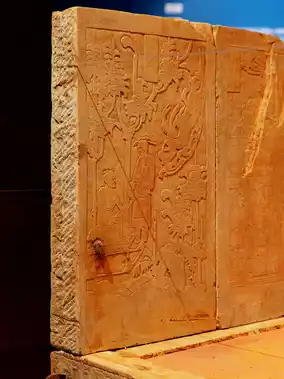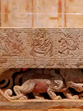 The most noteworthy part of the entire Qu Qing tomb is this stone sarcophagus bed, whose exquisite and intricate carvings are breathtaking. It is very similar to the two Northern Dynasties to Sui period screen sarcophagus beds returned from the United States, which I saw at the 'Five Continents and Four Oceans' exhibition at the Shenwumen of the Forbidden City in 2023, except that this one is much more intact.
