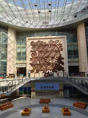 On October 2, we visited Anyang Museum, the second stop of our trip. We visited Yin Ruins Museum yesterday and planned to visit Anyang Museum today. We arrived at around 9:00 in the morning. There are free parking lots on both sides, which is very convenient. When we entered Anyang Museum, we saw many students doing homework, reading books, and studying at the small tables on the second floor. The atmosphere was great. The logo of Anyang Museum is at the front. It includes oracle bone inscriptions, the Eight Diagrams, chariots, bronzeware, bamboo slips, and even modern books. Various elements from ancient times to the present are combined together, which are not messy at all and run through ancient and modern times.