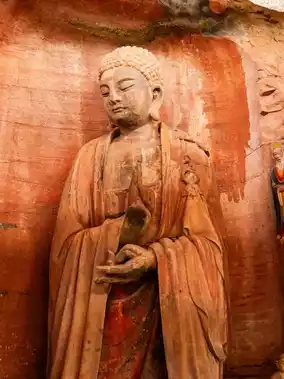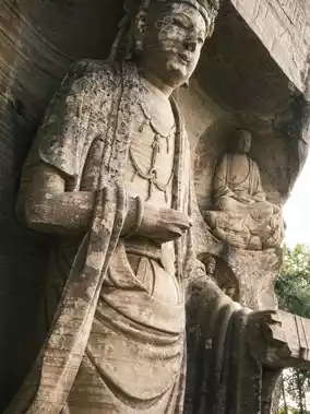 At the corner, the entire cliff face of carvings slowly unfolds,