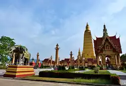Wat Mahathat Wachiramongkol (Wat Bang Thong) in Ao Luek District, Krabi, is magnificent. The beautiful temple is golden.