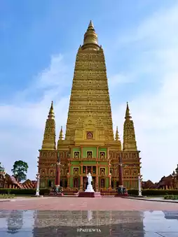 There is a golden pagoda that stands out tall and majestically. It can be seen from afar. It is the tallest pagoda in the South.