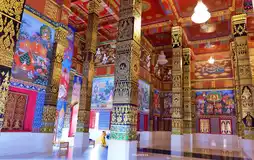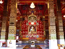 The “Phra Mahathat Chedi” was influenced by the Mahachedi of Buddha Gaya, the place where the Lord Buddha attained enlightenment in Gaya, Bihar, India. It stands tall and prominently in the middle of the temple, at 95 meters high, making it the tallest chedi in the South. The area surrounding the Phra Mahathat Chedi has a walkway or “balcony” that encircles the chedi on all four sides, with various Buddha images. There are many enshrined along the walkway for Buddhists to worship. Inside the Phra Mahathat Chedi, there is a large Buddha statue in the center, standing out majestically, which is admired by locals and tourists who visit this Buddhist site. There are also beautiful murals that tell the story of the life of the Buddha and are decorated with graceful Thai patterns.