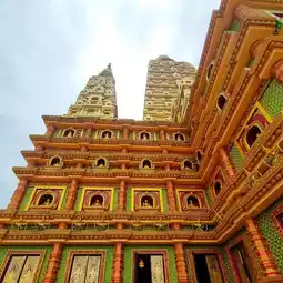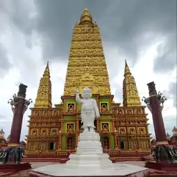 This temple is highlighted by the golden Phra Mahathat Chedi, approximately 95 meters high, which is considered the tallest pagoda in the South. The design was inspired by the Mahabodhi Buddha Gaya in India. Inside the pagoda, there are beautiful murals that tell the story of the life of the Buddha. The temple grounds are spacious and shady with various trees. There is a stone courtyard under the trees for tourists to relax. However, be prepared for the hot weather, especially during the day.