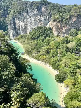 #2024mapped The palm trees towered over the soft, white sand of Koh Lao Lading. The water was perfect temperature for swimming. We arrived before the crowds and enjoyed the small island paradise. We proceeded to the stunning turquoise waters of Hong Island! After climbing over 400 steps to reach the Hong Island 360° Viewpoint, we were greeted with panoramic views of the smaller hongs that dotted the expansive ocean and the beautiful beach below. You will really appreciate a swim after this climb!