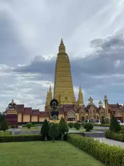 The highlight of this temple is its magnificent golden pagoda, standing tall in the center of the temple grounds. It's grand and beautiful, visible from afar ⛅️. This pagoda was built to house sacred relics of the Buddha and was inspired by Phra Pathom Chedi, giving it an aura of grandeur and reverence ✨.