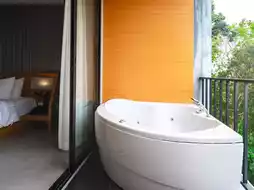 Apple A Day Resort Krabi is a charming hotel decorated in a simple minimalist style combined with modern elements. The accommodation is peaceful with a good atmosphere, and it even has a slide in the pool for added fun. There are several common areas where guests can relax as they please, and a kids' club zone for those traveling with children. There are plenty of activities to do within the resort, including golf, horse riding, karaoke, diving, fishing, canoeing, and a fitness room. The resort offers 8 types of rooms. If you're looking for a great place with beautiful rooms and a spacious pool, this is the place to be.