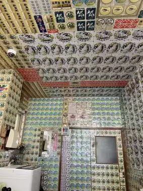 The stickers of origin and omoumai stickers collected by the owner are also worth seeing.