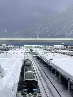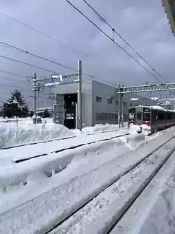 Standing on the overpass overlooking the railway, the train slowly enters the platform in the snow, which instantly reminds people of the scene in "The Journey of Bell Buds". The JR train forms a sharp contrast with the thick snow around it, which is simply a real-life snow scene postcard!