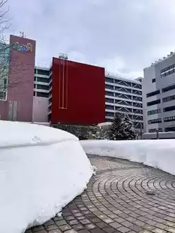 Even in the city center, the snow is still so high that it seems to have built a natural barrier. Snow walls are piled up in front of shops and shopping malls, and walking on the brick and stone trails is like walking through a white maze. The brightly colored buildings are particularly eye-catching in the white, especially the red and green AUGA shopping center, which has become a favorite of photography enthusiasts.