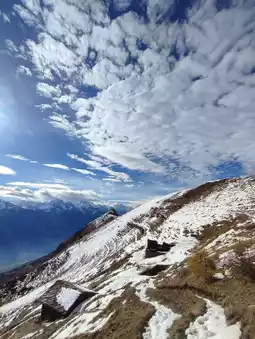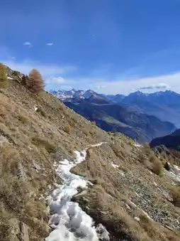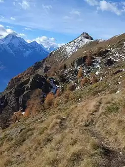 Experience the beauty of the Alps in the transition of autumn and winter: From Verrayes to Becca D'Aver hiking trip, yesterday, from Verrayes to Becca D'Aver, Becca D'Aver. Stunning colors, even with snow on top. A peak in the middle of the valley, magnificent scenery! For the snow and mud on the ridge of Cima Longhede!
