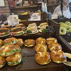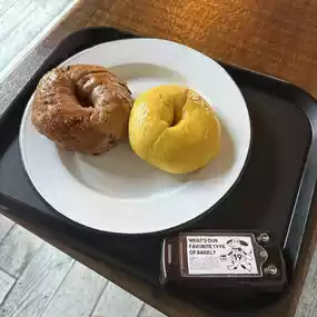 This is a super popular bagel shop that you can buy by piling it up on your plate!