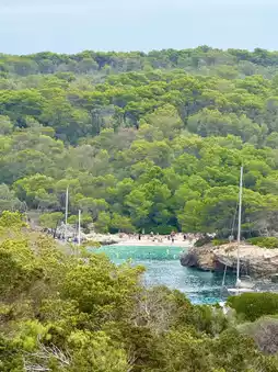 A weekend on Menorca’s coast isn’t just about lying on the beach — it’s also about adventure. Renting a kayak to explore hidden caves, taking a boat ride along the cliffs, or even just hiking the coastal trails gives you a whole new perspective. From the water, the beaches look even more dramatic, with their white sand framed by rugged rocks and green hills. It’s the kind of place that satisfies both the need for relaxation and the craving for adventure.