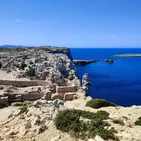 Standing tall on the northernmost point of Menorca, Far de Cavalleria is a historic lighthouse that offers sweeping panoramic views of the island's rugged coastline and the sparkling Mediterranean Sea. As you ascend the tower, you'll be rewarded with breathtaking vistas that stretch as far as the eye can see. The surrounding area is a natural wonderland, with dramatic cliffs, hidden coves, and pristine beaches. Far de Cavalleria is an ideal spot to witness the magical beauty of Menorca's sunsets, where the golden hues paint the sky in a mesmerising display. It's a place of tranquillity and serenity, inviting visitors to connect with the raw beauty of nature. Nearby you can find remains of the defensive structures and poetry written on stones.