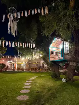 At night, the treehouse and the beautifully lit garden are incredibly charming and perfect for photos. 📸🌙
